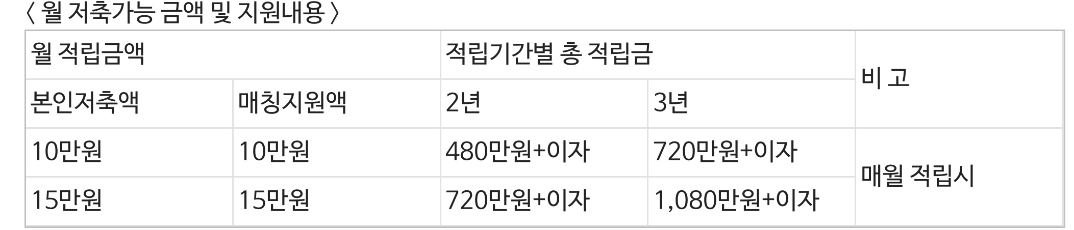 ④공고일 현재 근로중인자 - 저축기간 및 금액 : 2년 , 3년 / 10만원 ,15만원 중 선택