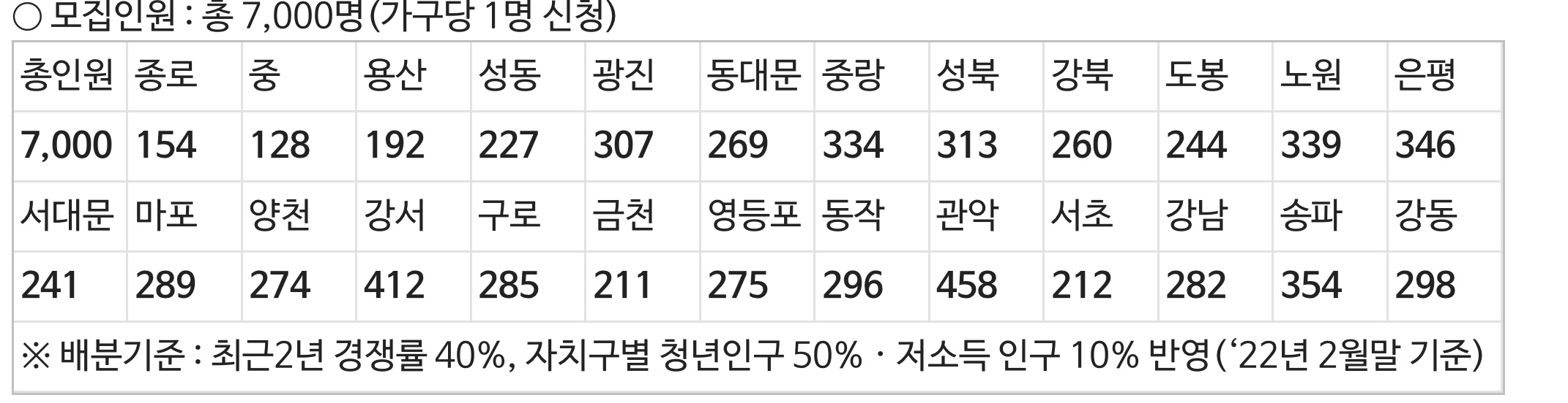 - 신청자격 : 공고일 현재 서울시에 거주하는 만 18세 이상~ 34세 이하 청년