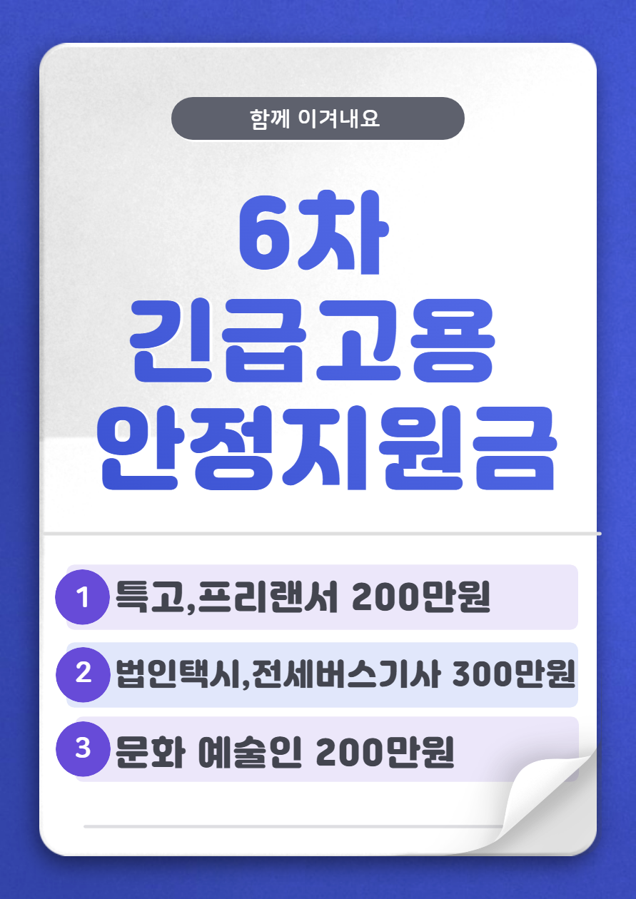 6차 긴급고용안정지원금 특고 프리랜서 지원금액 내용