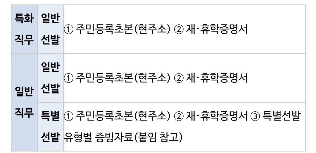 - 제출대상 : 1차 선발자 및 예비 선발자
