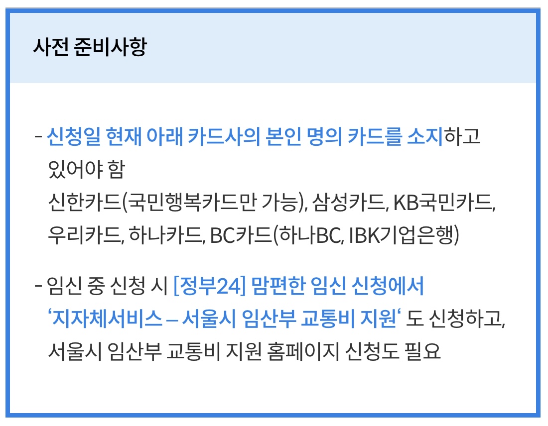 - 임산부 본인 명의 신용(체크) 카드에 70만원 교통포인트 지급
