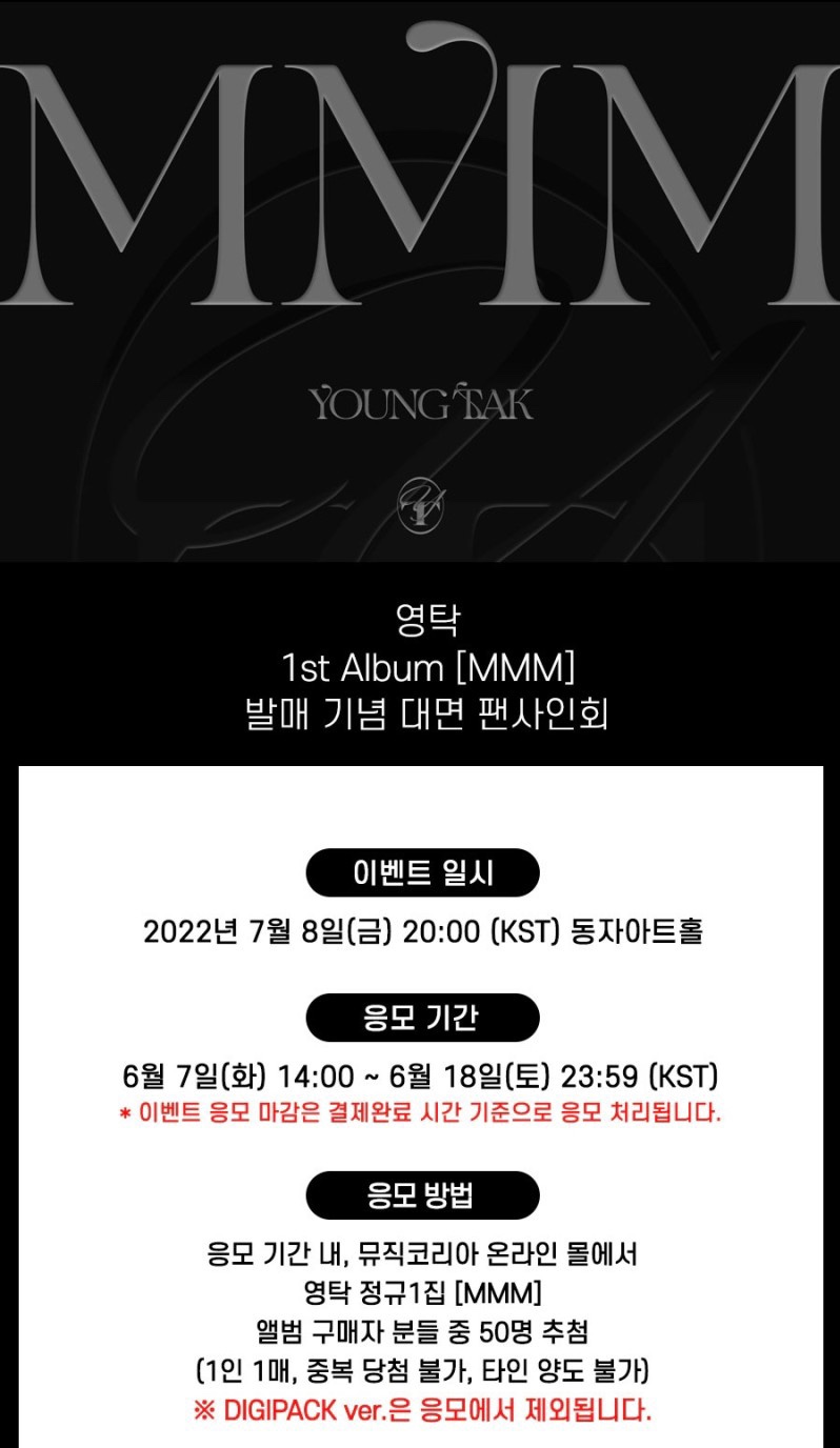 ✔당첨자 발표 : 2022년 7월 4일 (월) 17:00 이후 이후 뮤직코리아 온라인 몰 내 당첨자 게시판공지