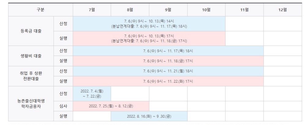 - 등록금대출 : 2022.7.6 (수) 9시 ~ 2022.10.13(목) 17시