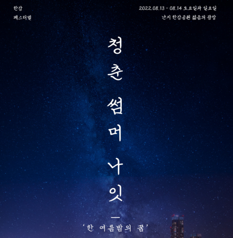 감성충만한 12팀의 보컬리스트들이 나와 한강위에서 한여름밤을 촉촉히 젖셔주는 '한여밤의 꿈' 같은 페스티벌이 8/13-14 양일간 펼쳐집니다. 선선한 공기와 어울리는 노래와 더위를 덜어내 줄 감미로운 보이스를 가진 뮤지션들 소개와 티켓팅 일정등 "청춘썸머나잇" 공연을 자세히 소개해드립니다.