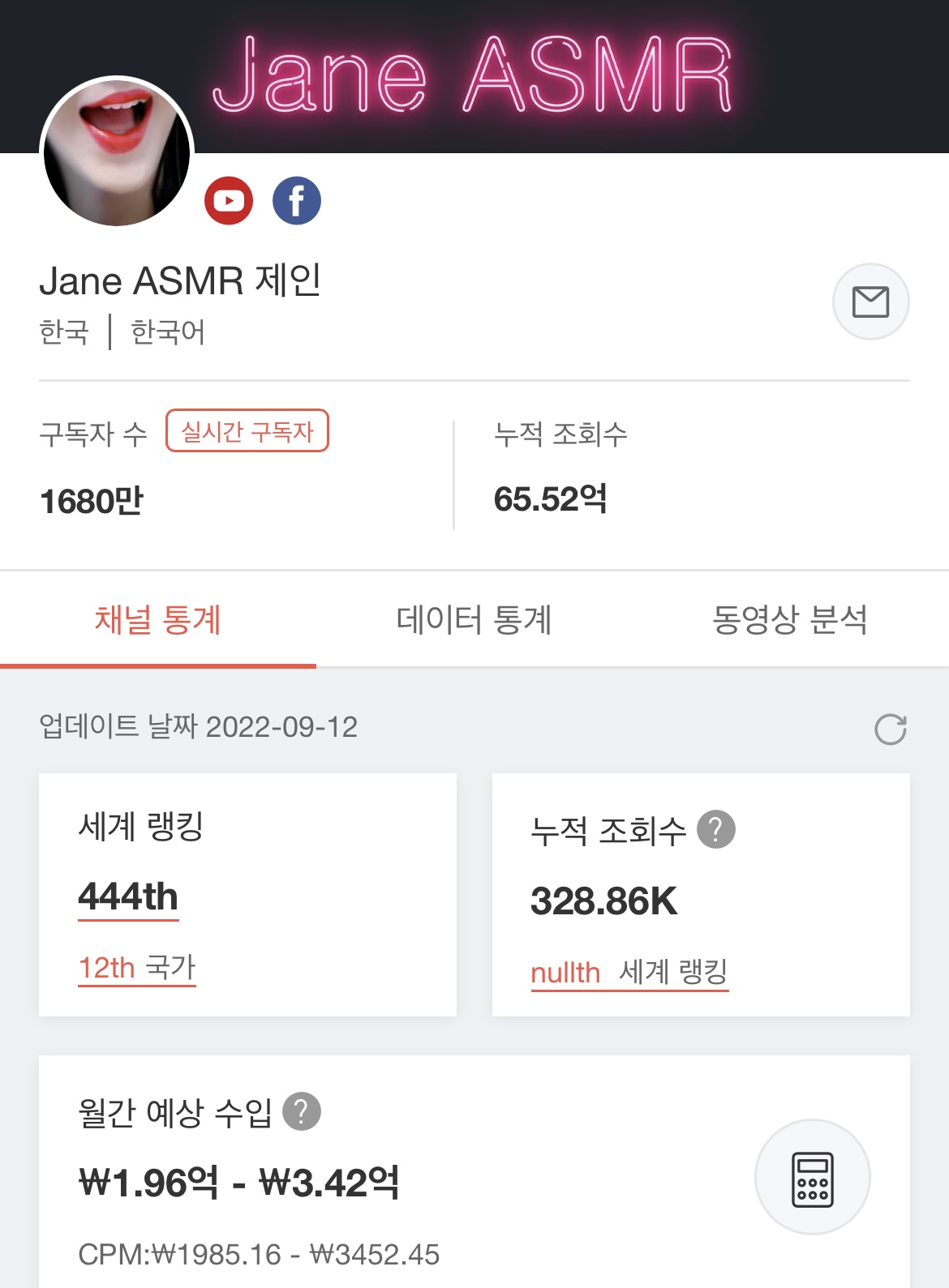 | 12위 | JanASMR제인 |