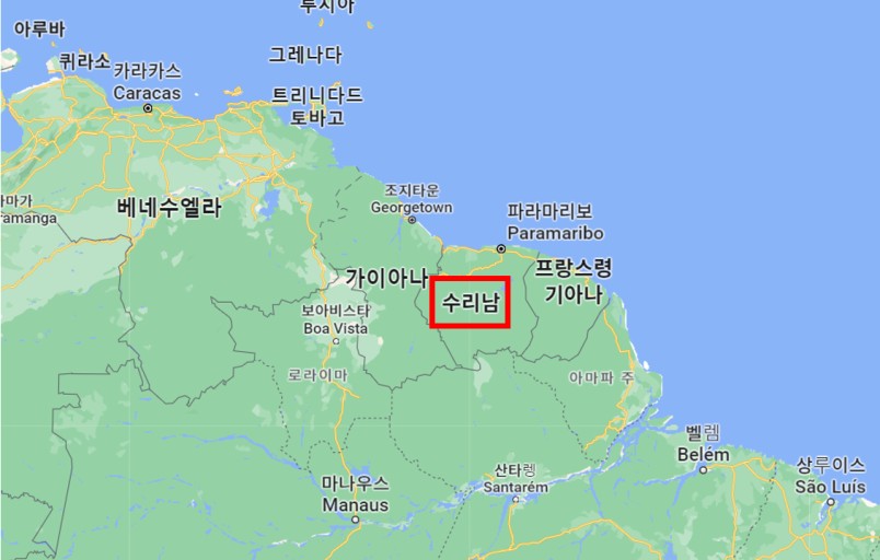 수리남이라는 나라이름을 사실 처음 들어봐서, 드라마 제목이 수리남이라고 하여, 무슨뜻인가 했는데, 수리남은 수리남공화국 Republic of Suriname 이라는 베네수엘라 아래쪽에 있는 작은 나라입니다.