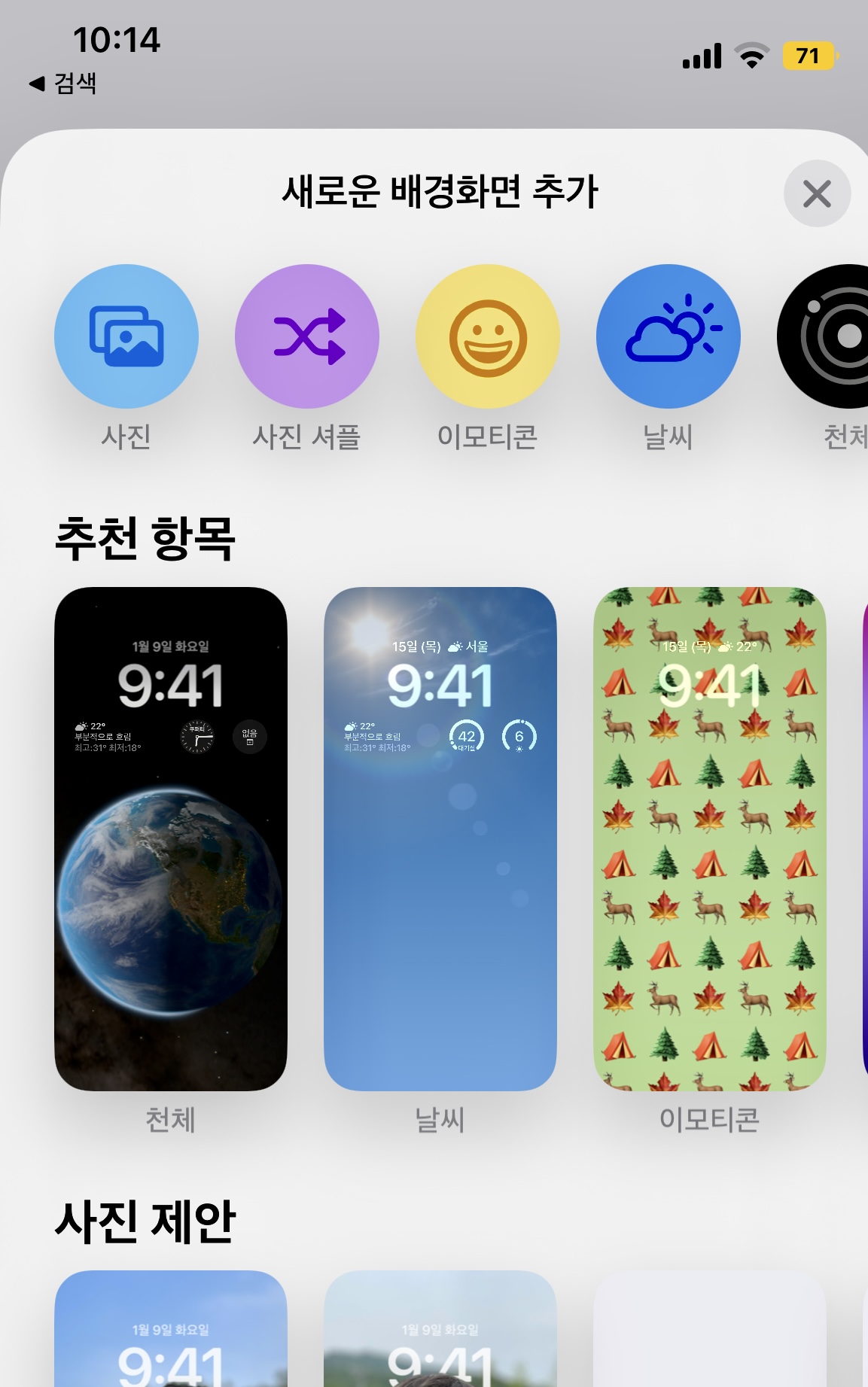2.iOS 가 집중모드와 가장 관련성이 높은 앱과 위젯으로 구성된 홈화면을 페이지에 제안해주며, 잠금화면 또한 집중모드옵션에 맞게 제안해줍니다.