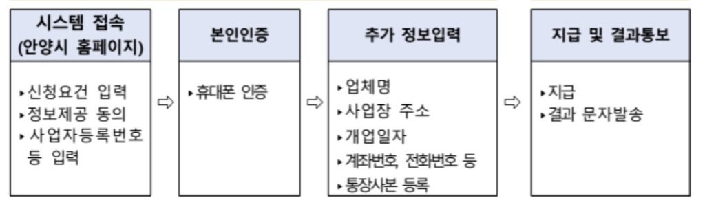 전화문의 : 안양시 기업경제과 소상공인 재난지원금 TF 팀 ( ☎ 8045-5201-5211 ) 또는