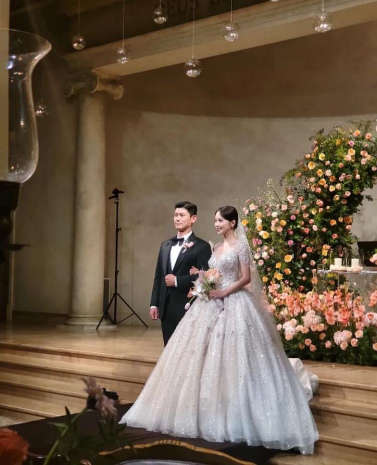 아유미는 결혼식 당일 화려한 비즈가 더해진 웨딩드레스를 입고 서울의 한 고급스런 웨딩홀에서 결혼식을 올렸습니다.