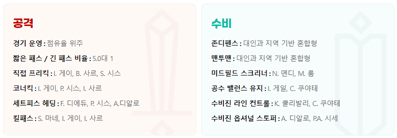 | 16. 에두아르 멘디 | 22. 압두 디알루 | 5. 이드리사 게예 | 18. 이스말리라 사르 |