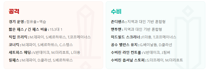 | 1. 저스틴 베일로 | 4.버질 반 다이크 | 22. 덴젤 둠프리스 | 10.멤피스 데파이 |
