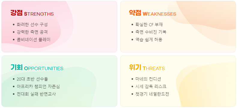 | 11월 25일 금요일 22:00 | 카타르 | VS | 세네갈 | 프리뷰 | ||