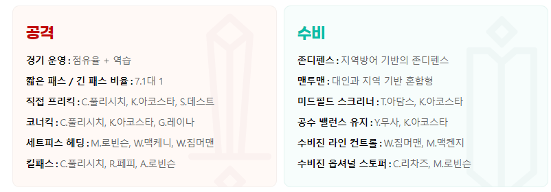 | 골키퍼 | 수비수 | 미드필더 | 공격수 |