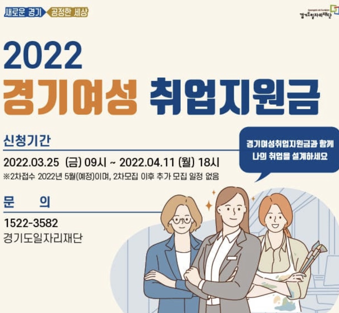 혹시 1차에서 선발되지 않으셨더라도 5월에 2차 모집 발표가 있을 예정이라고 합니다. 취업 준비하시는 경기도 여성분들은 꼼꼼하게 확인 후 신청하셔서 받으시길 바랍니다.