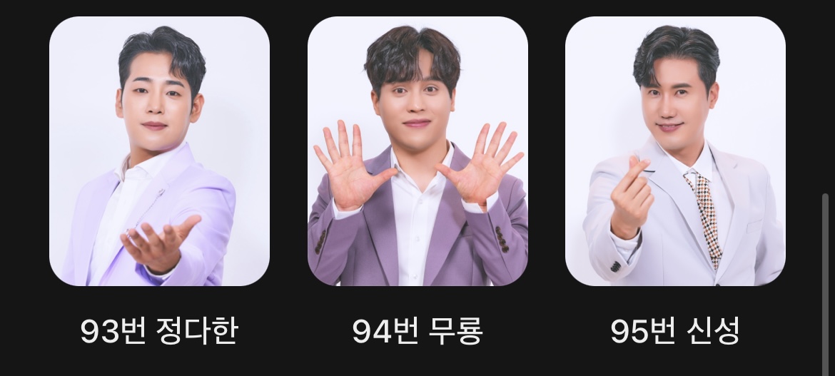 전종혁 오혜빈 홍진영 불타는소년단 임성현 태백 이승현 박민호 춘길 조주한 신명근 손태진 에녹 펑크리얼브 홍성원 박정서 장영우 안율 김정민 박민수 이승환 황영웅 장동열 김태수 이수호 오송 이하평 강설민 최정훈 박현호 김중연 공훈 최성 황준 최윤하 남승민 한강 최현상 강훈 박규선 민수현 정다한 무룡 신성