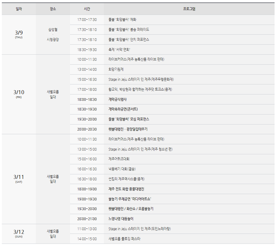 제주들불축제 행사프로그램