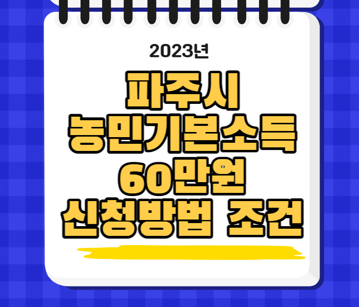 파주시에서 농업에 종사하고 있는 농업인들의 기본소득 보장을 위하여 파주시 농민기본소득 지원사업 신청일정을 공고하여 알려드립니다.