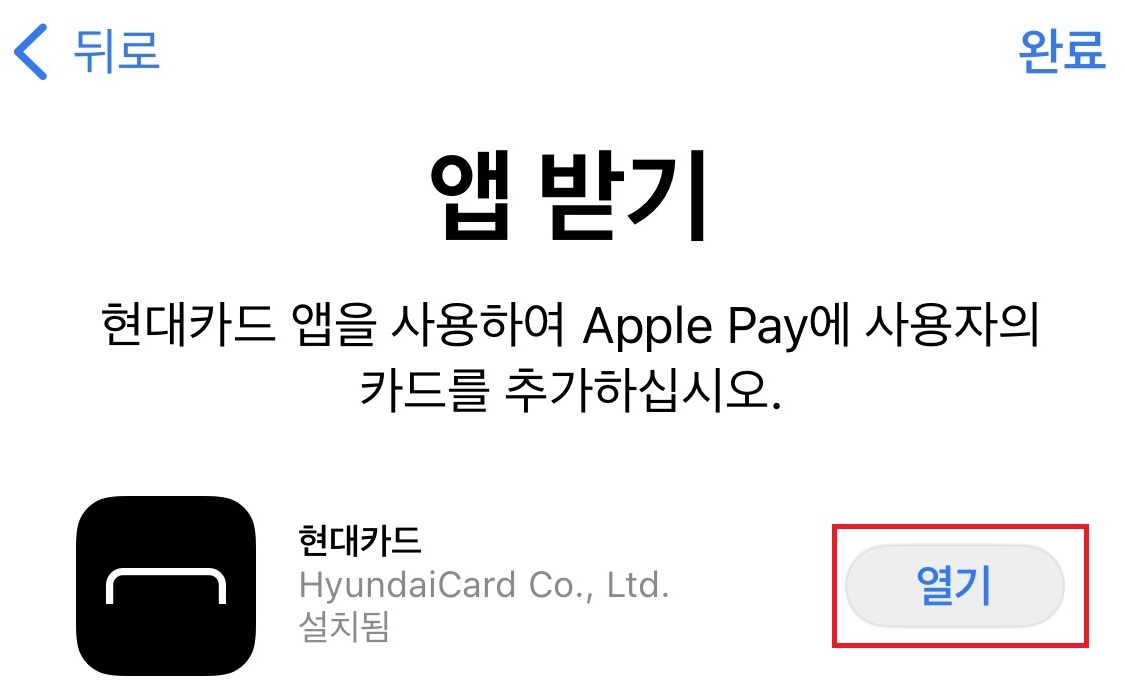 4) 현대카드 앱을 다운로드 합니다. 앱이 있으면 열기를 열면 바로 소장하고 있는 카드 가 나타납니다.
