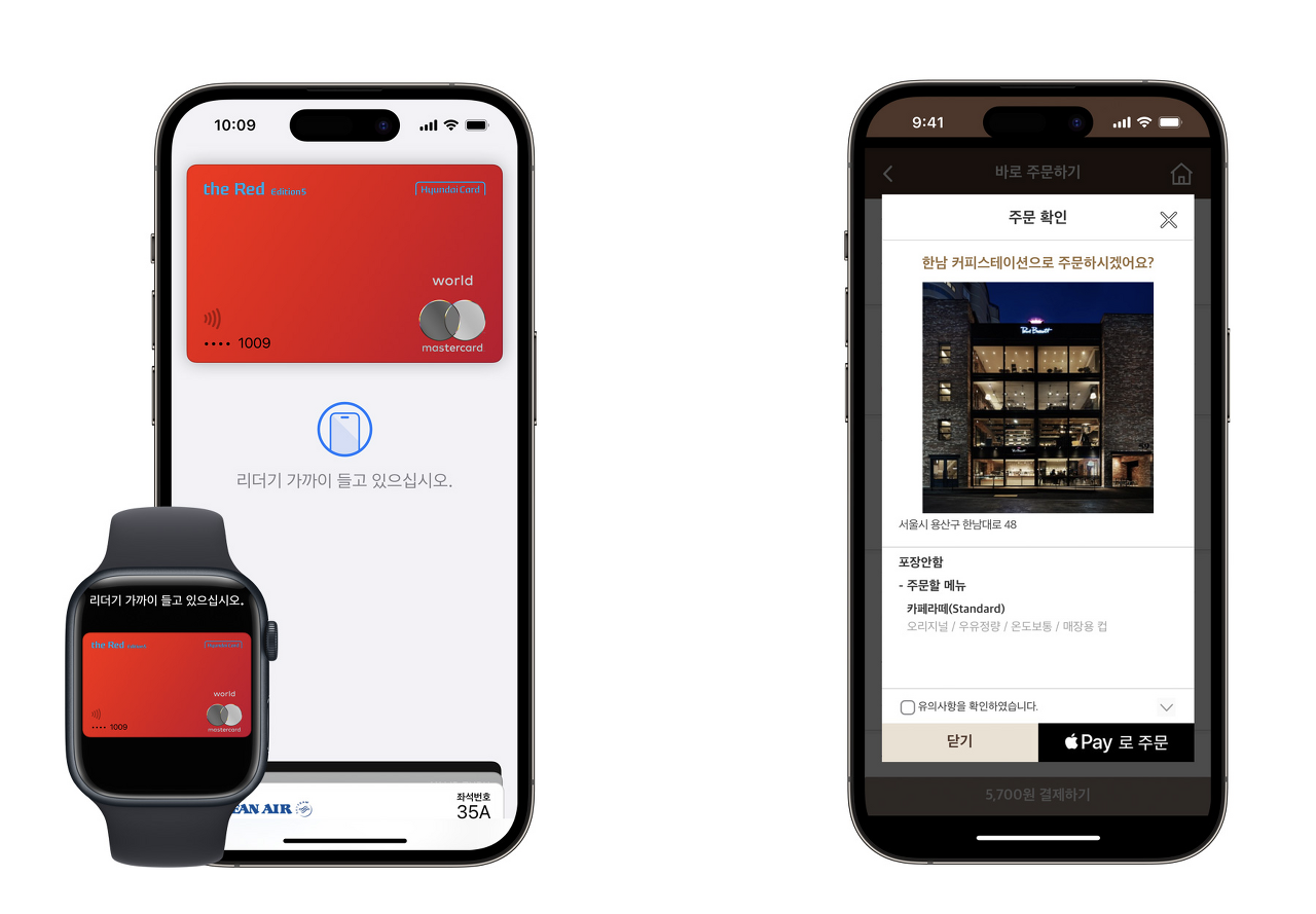 - 애플페이는 현재 현대카드만 가능합니다. 현대카드로 발급된 비자, 마스터카드 브랜드 신용카드, 국내 전용 신용카드 , 체크카드는 모두 사용가능합니다. 다른 카드사들은 조금 더 기다려야 할 것 같으며 교통카드도 아직은 사용이 안됩니다.