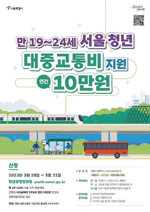 서울시 청년 대중교통비 지원사업은 사회에 첫발을 내딛는 만 19~24세 청년들의 경제적 부담 완화 및 이동권 보장을 위해 시행되며, 연간 10만원 한도의 교통마일리지를 지급하는 사업입니다.