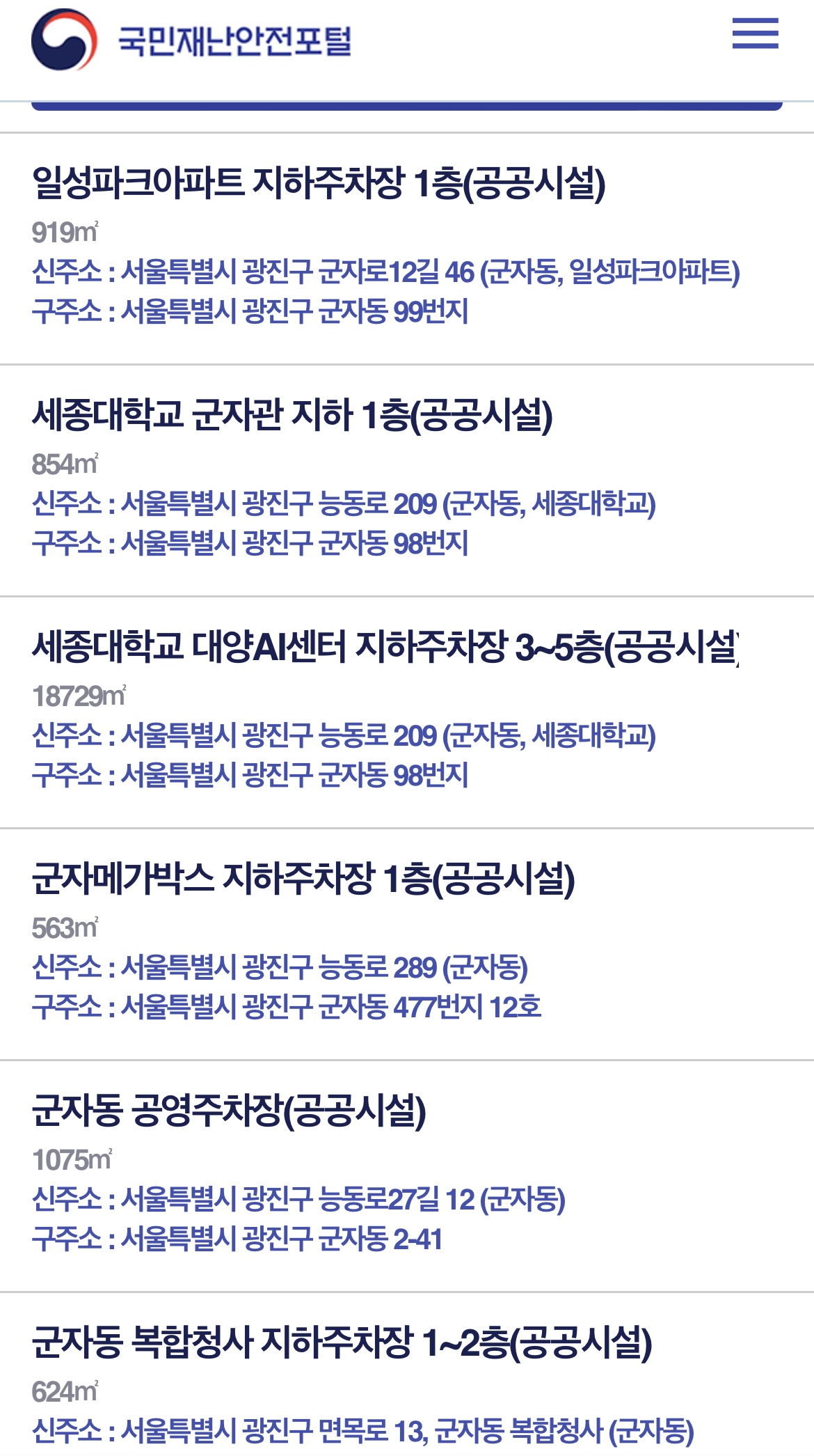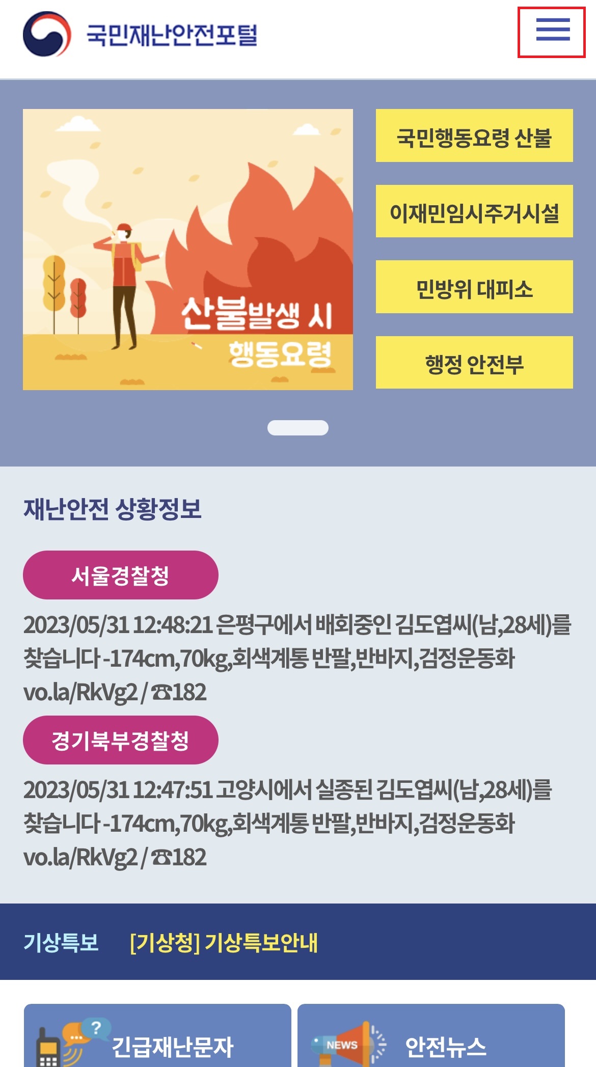 다만, 앱인만큼 접속량이 단시간 급증할 경우 사이트 다운이 될 가능성이 있으니 '국민안전재난포털 사이트' 등 다른 방법으로도 검색하시는 것을 추천드립니다.