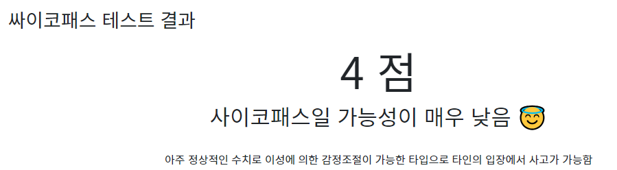 사이코패스 테스트 자가진단 무료 테스트 진단 결과 해석 싸이코