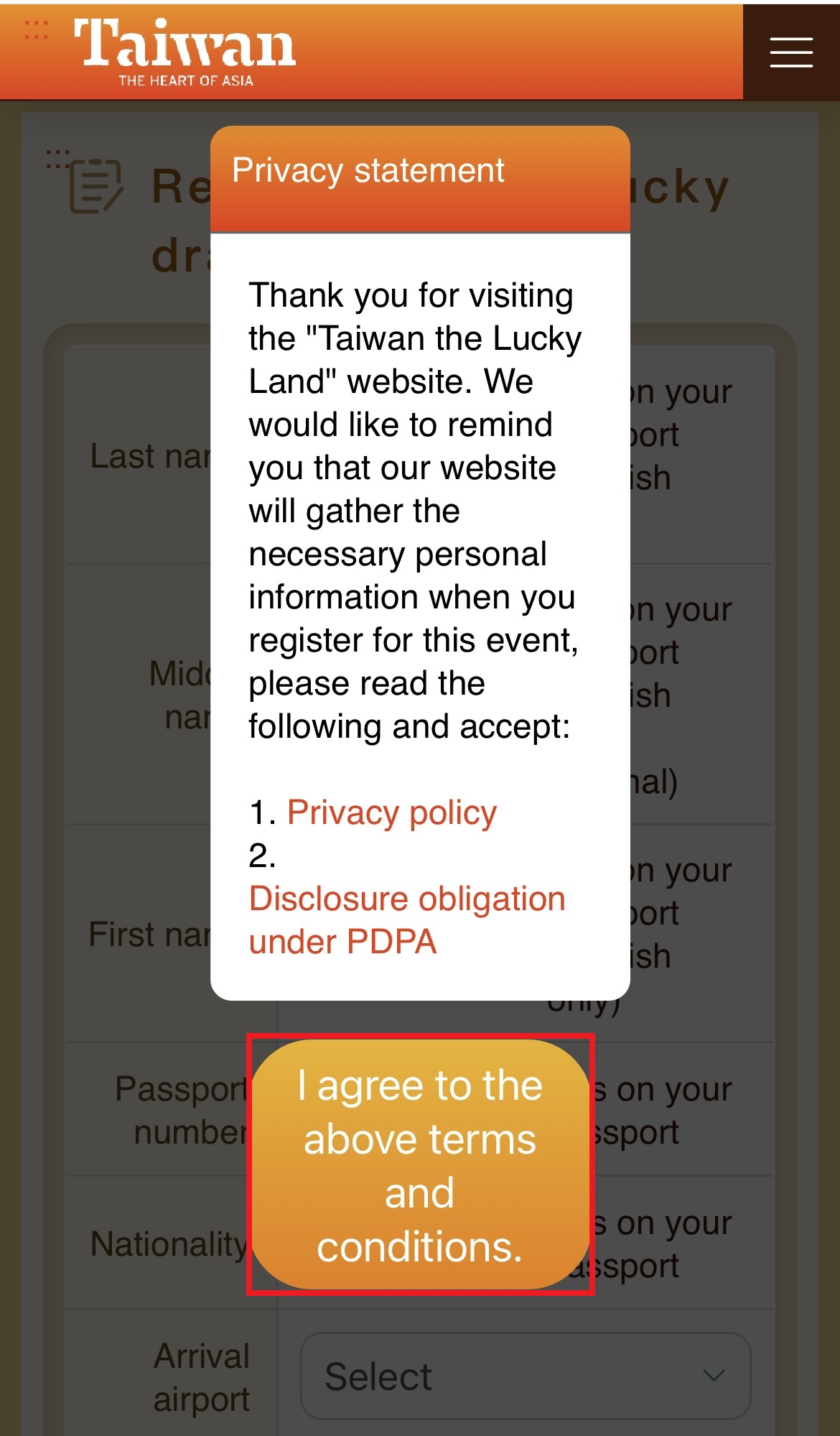 1)대만 입국 전에 지정 홈페이지 방문 하여 해당정보 등록 한 뒤에 QR 코드를 수령합니다. (당첨자 본인만 사용 가능합니다. )