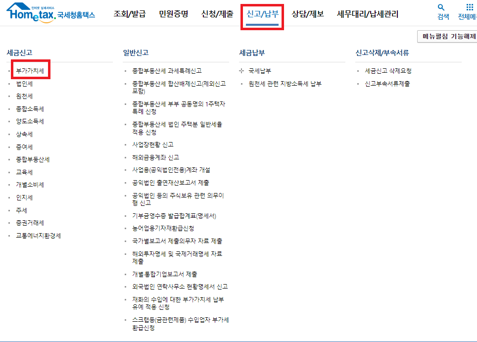 ▶ 부가세 신고 메뉴를 클릭합니다.
