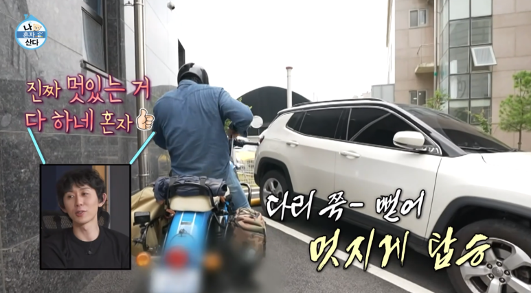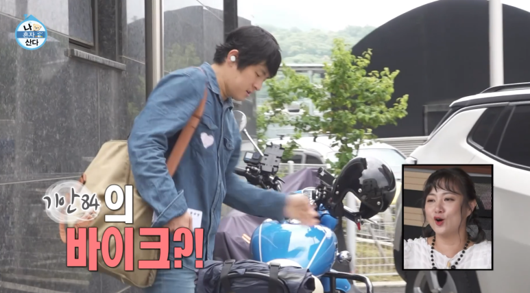 예전에 몰던 바이크는 이미 수명을 다해 새로운 바이크를 장만했다는데요, 새로운 바이크 역시 기안84와 잘 어울리는 유니크한 하늘색 오토바이입니다.