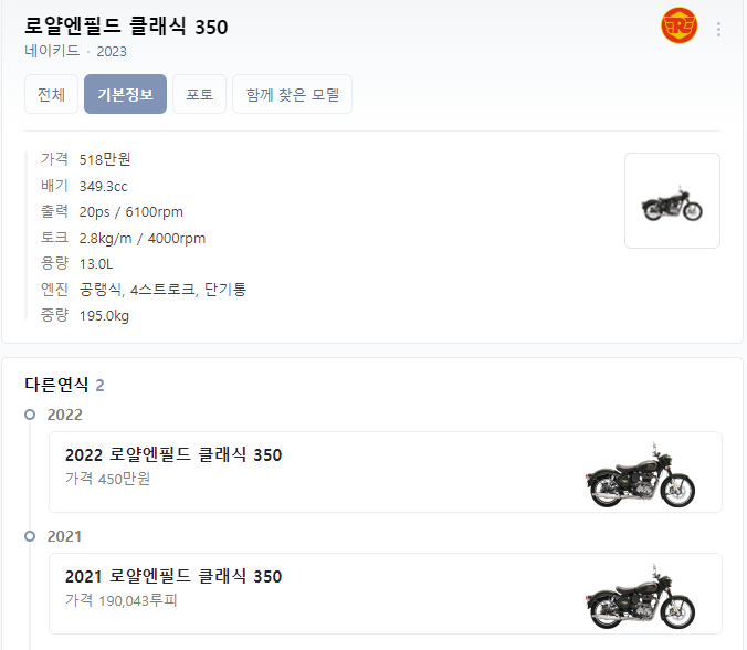 나혼자산다 나혼산 기안84의 오토바이는 로얄엔필드 브랜드의 클래식 350제품으로 가격은 500만원 초반대로 형성되어있습니다.