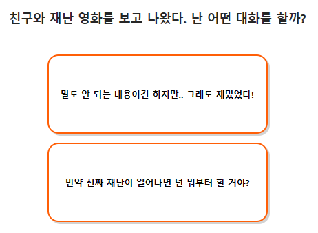 친구와 재난 영화를 보고 나왔다. 난 어떤 대화를 할까?