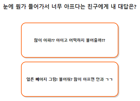 눈에 뭔가 들어가서 너무 아프다는 친구에게 내 대답은?