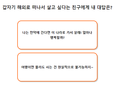 갑자기 해외로 떠나서 살고 싶다는 친구에게 내 대답은?