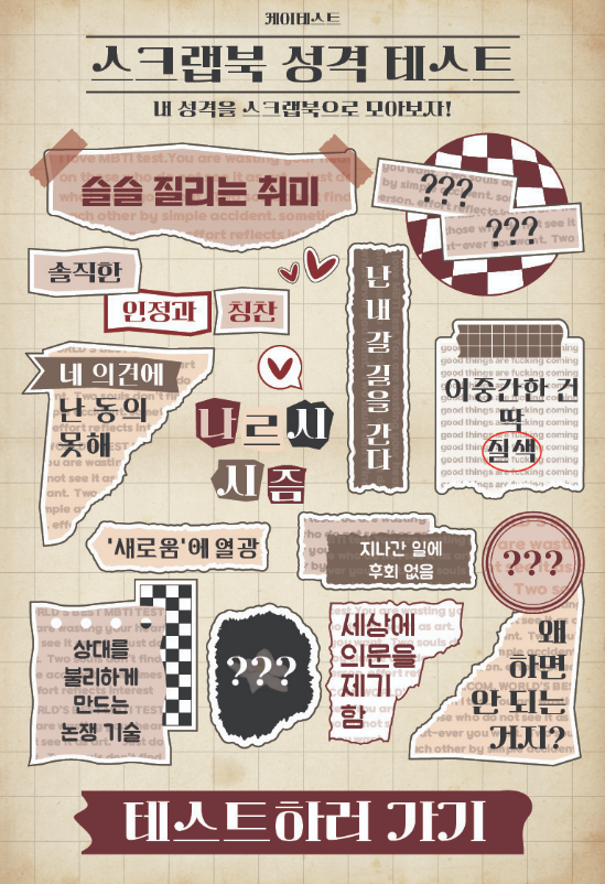 얼마전 포스트잇 성격테스트가 많은 인기였는데,,그 와 비슷한 스크랩북 성격테스트가 새롭게 나와 알려드립니다.