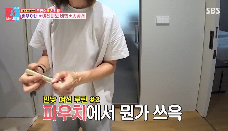 오연수는 아침에 일어난 후 간단히 세안을 마친 후 토너패드로 피부 결을 정리한 후 , 괄사 마사지로 얼굴의 주름을 펴기 시작했는데요, 마치 주문을 외우듯 괄사 마사지를 열심히 해야한다고 말하는 모습이 인간미 느껴집니다.