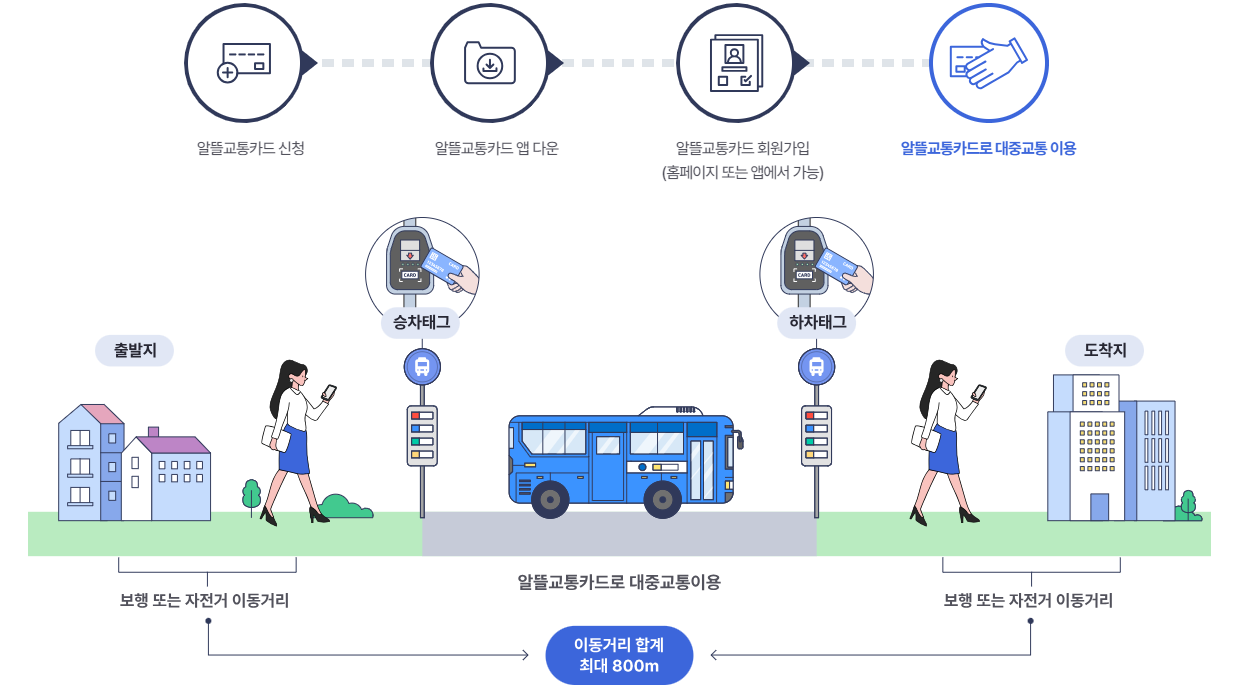 알뜰교통카드는 대중교통 이용 시 걷거나 자전거로 이동한 거리 (최대 800m) 에 비례해 최대 20% 의 마일리지를 지급하고 , 카드사 추가로 약 10% 의 할인을 제공하여 대중교통비를 최대 30% 이상 절감할 수 있는 교통카드입니다.