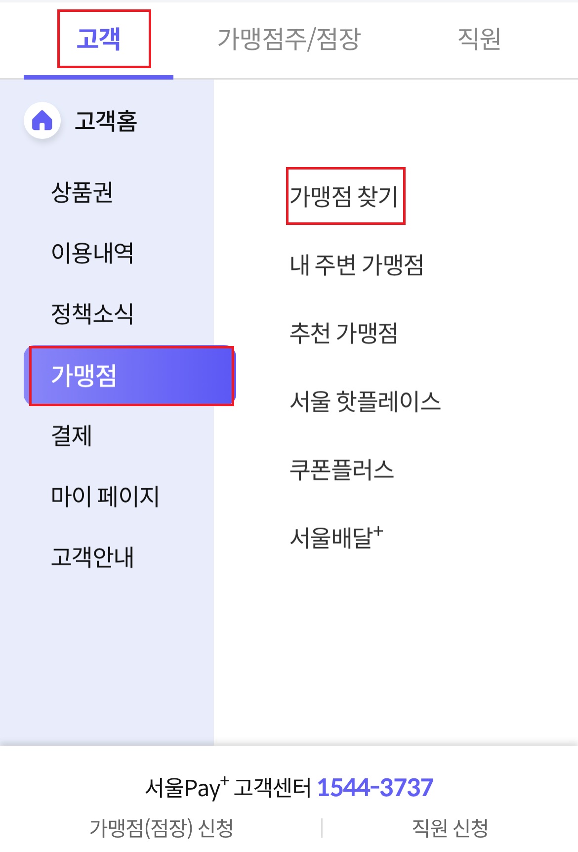 서울페이 에 접속 후 고객부분 클릭하여 가맹점에서 가맹점 찾기를 하시면 됩니다.