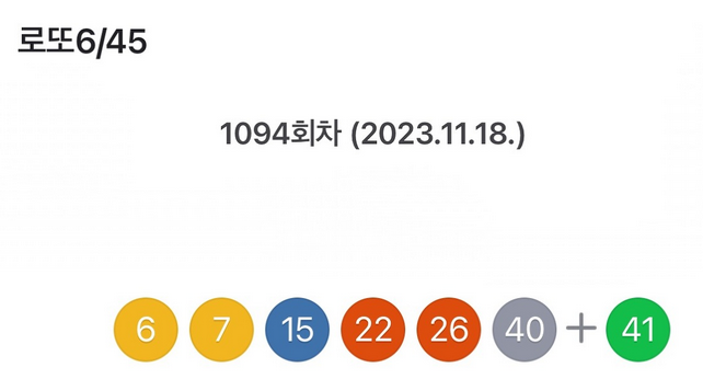 2023년 11월 18일 1094회차 로또 당첨번호 조회 결과가 발표되었습니다.