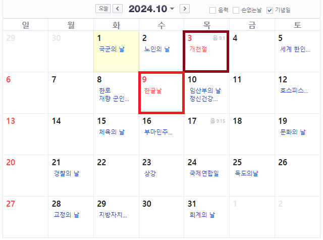 - 10월 3일 (목) 개천절