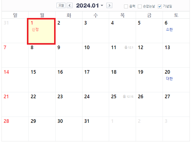 - 1월 1일 신정 (월)