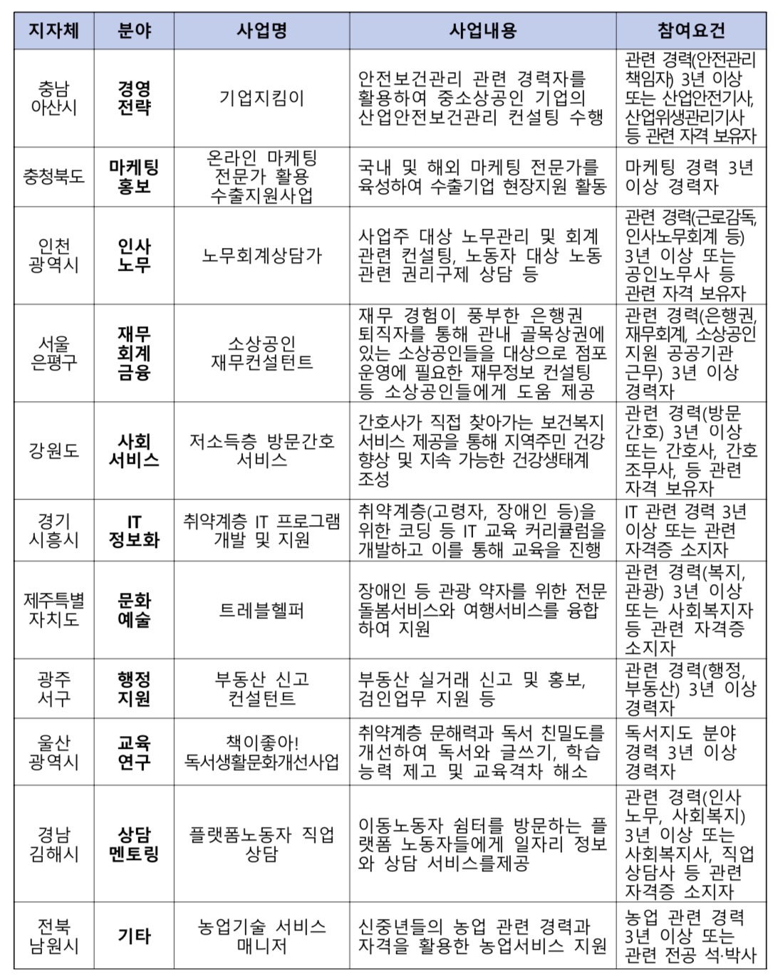 - 참여자: 만 50세 이상 만 70세 미만 퇴직전문인력