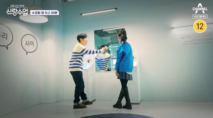신랑수업 김동완과 서윤아는 연인들이 많이 찾는 연인 심리 체험 전시관을 방문합니다.