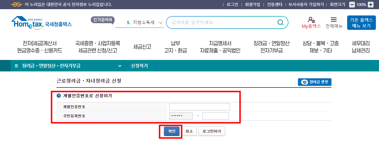 2024년 근로 자녀장려금 대상 조회 신청