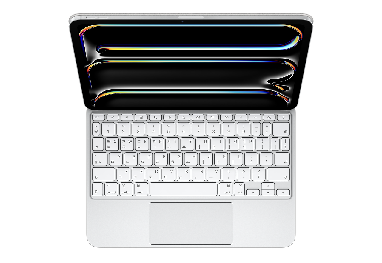 새로운 매직 키보드는 스페이스 블랙 알루미늄 팜레스트를 갖춘 블랙 색상과 실버 알루미늄 팜레스트를 갖춘 화이트 색상이 있습니다.