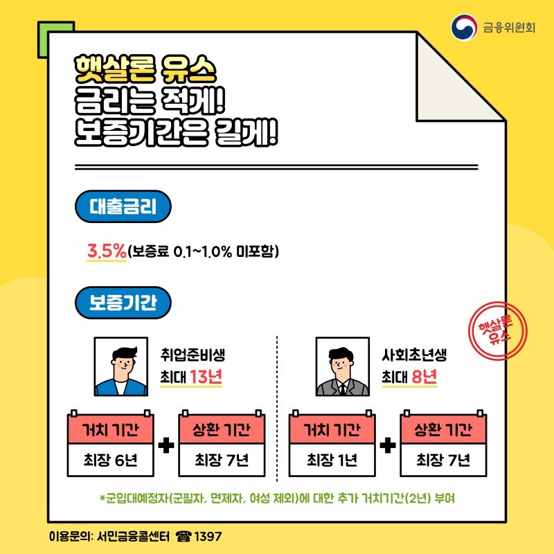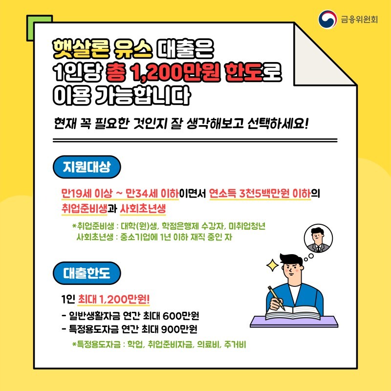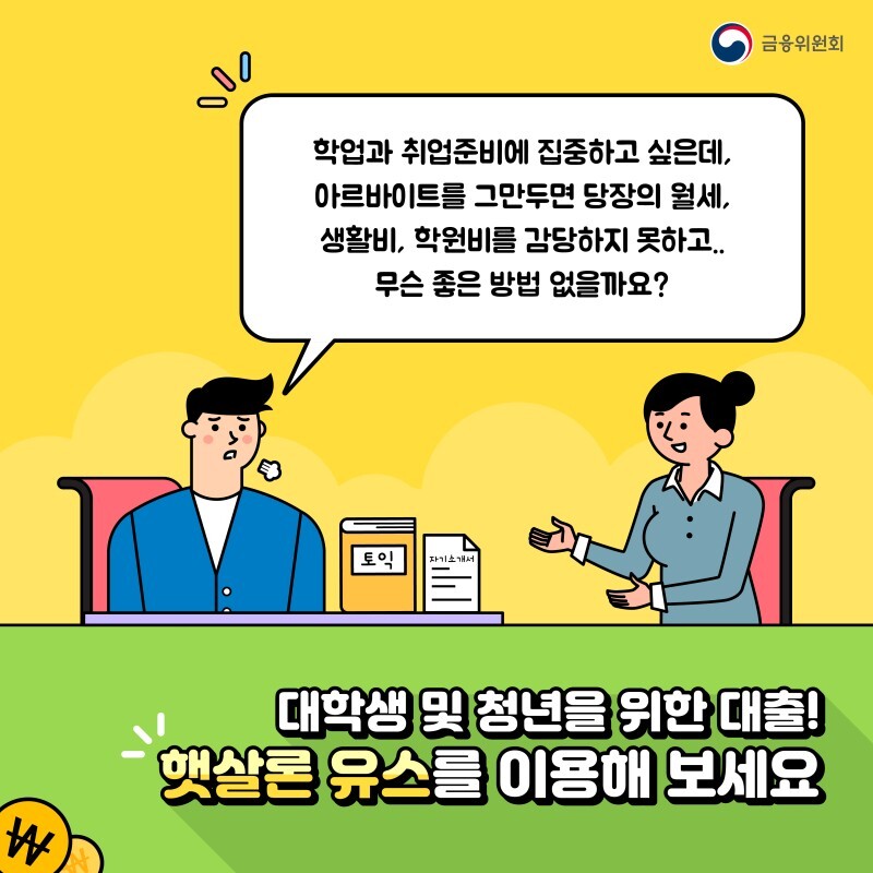 A. 대학생 및 청년을 위한 대출 햇살론 유스를 이용해 보세요