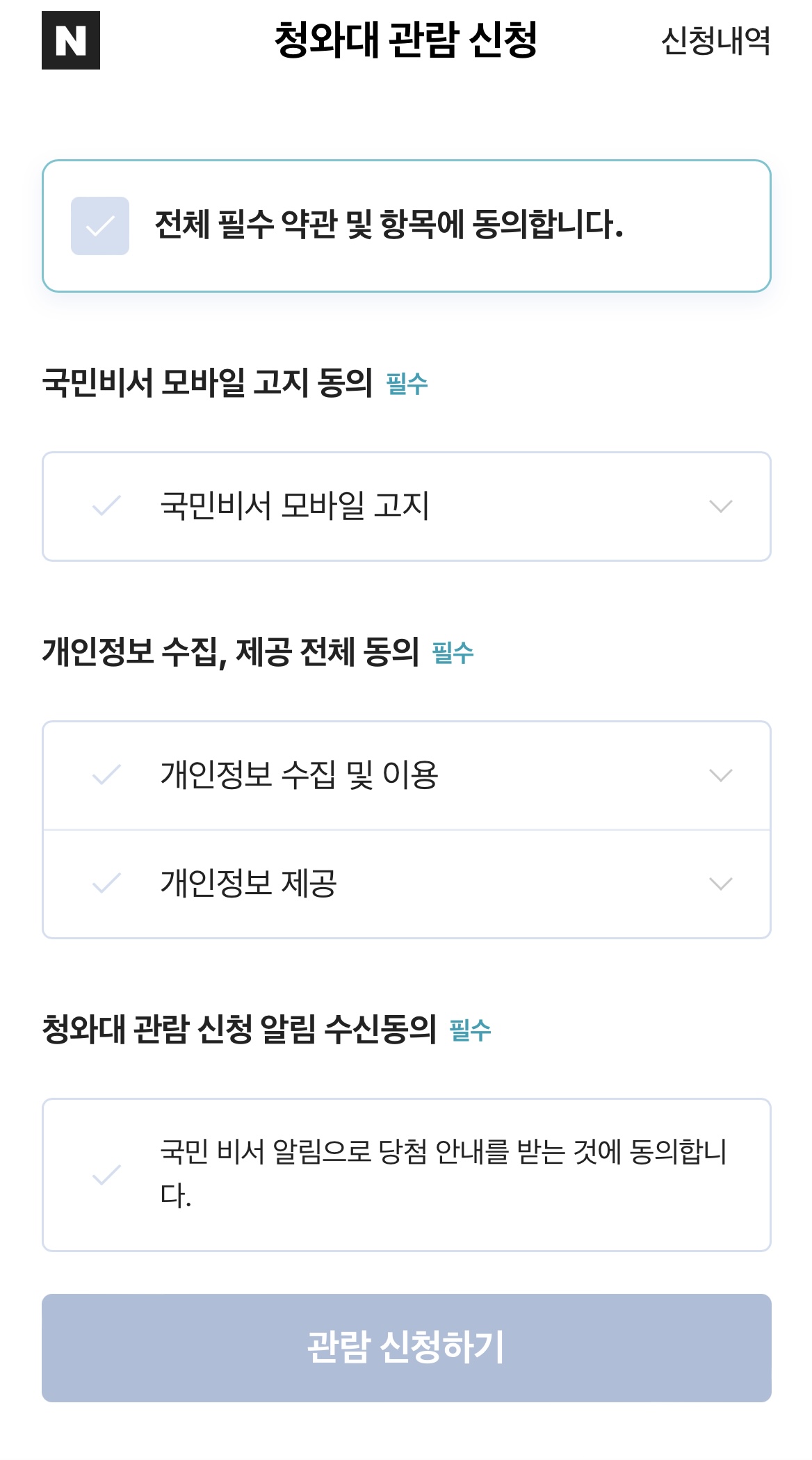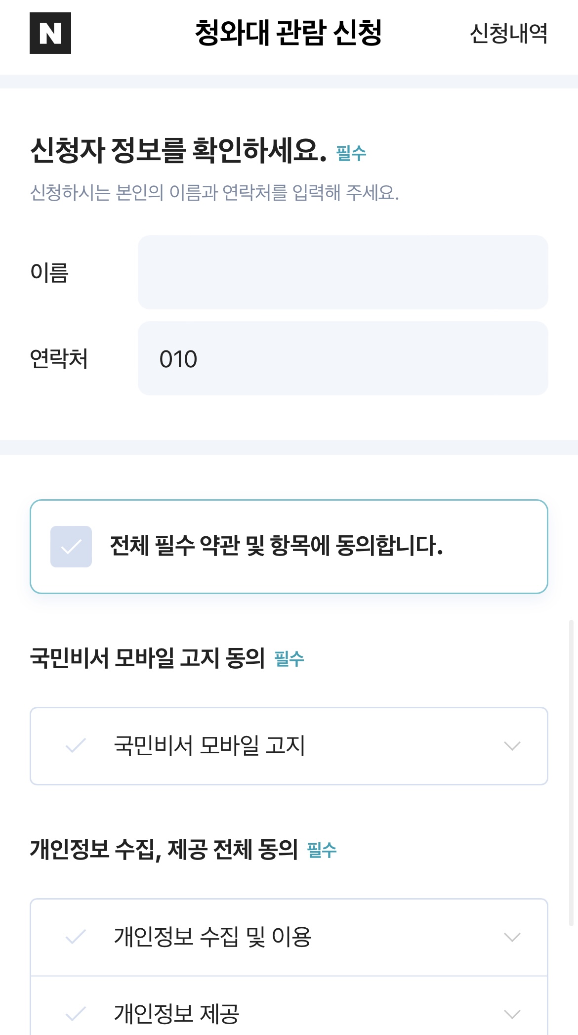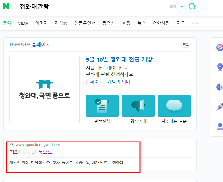 - 포털사이트에 청와대 관람이라고 입력합니다.