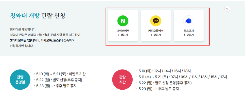윤석열 정부의 집무실이 용산으로 이전됨으로써 청와대를 5월 10일 부터 개방하기 시작하였는데요