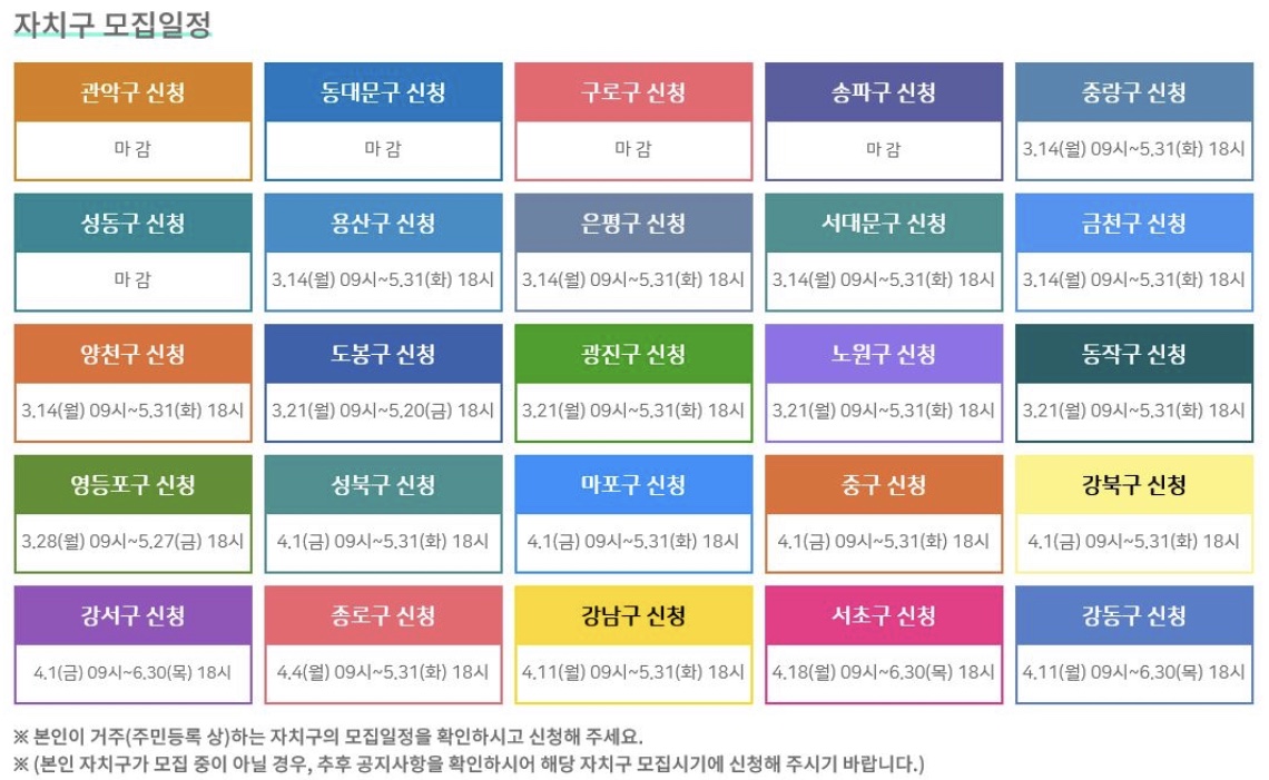 자치구별 모집현황 (5.17현재 마감된 곳이 있습니다)