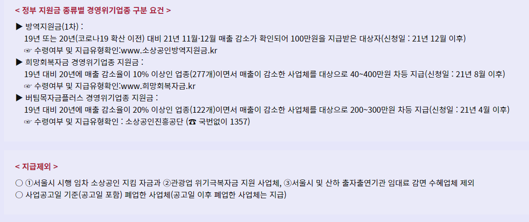 - 정부 방역지원금(1차) 수령으로 매출감소가 확인되는 대상자 중
