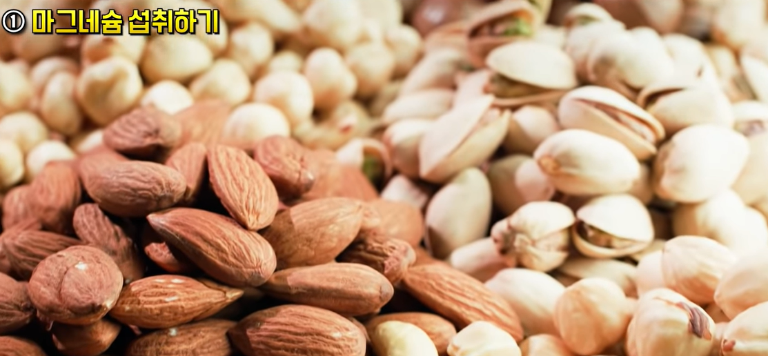 첫 번째는 아몬드와 같은 견과류를 섭취하는 것입니다.정확히 말하면 마그네슘을 적정량 섭취하는 게 좋습니다.